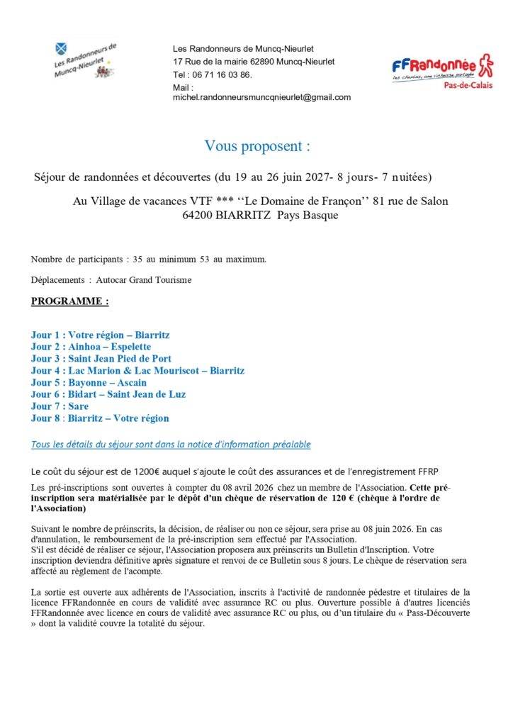 Biarritz 2027 notice d’information prealable Bulletin d’inscription Biarritz 2027 Bulletin Souscription assurances facultatives Conditions générales de vente Guide assurance RCP & Options